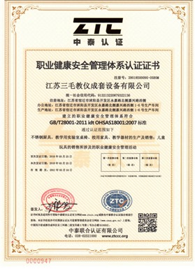 先后通過ISO9001國際質量體系認證、ISO14001國際環境體系認證、OHSAS18001國際職業健康安全體系認證及3159002國際信用管理體系認證、CE認證以及取得國家知識產權多項實用型專利。